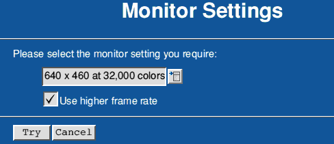 The list of available resolutions/colours will be dependant on the monitor and the whether the FE version of the ARM chip is being used. The option button labelled 'Use higher frame rate' will enable users with superior monitors to obtain a display of higher quality.
