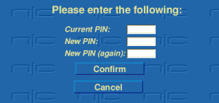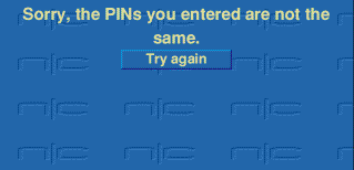 Once the details have been entered and 'Confirm' pressed a check is made to see whether the current PIN is correct and that the new ones are the same. If this check fails then the following screen is displayed: