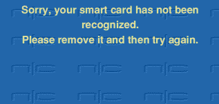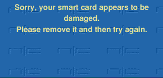 At various points during the reading of a valid smart card it is possible that an error may occur because the data is unreadable. If this happens the following screen will be displayed: