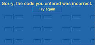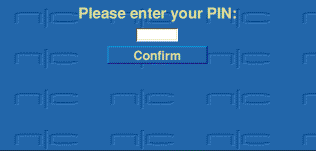 Once a PIN has been entered and 'Confirm' pressed a check is made to see whether the PIN is correct. If an invalid PIN has been entered then the following screen is displayed: