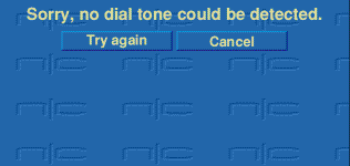 'Try Again' will restart the dial-up procedure, while 'Cancel' will return to the Connect screen.