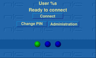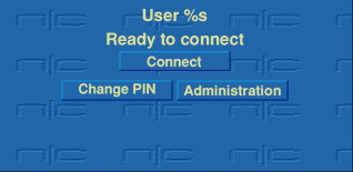 Once users have confirmed that they are a valid user the Connect screen is displayed. Users are given the choice to either enter the administration application, change their PIN or connect to the server: